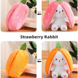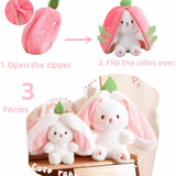 The Rabbit Fruit Doll is designed for endless amusement with its ingenious convertible features. With a simple tug on the bunny ears, the whimsical rabbit transforms into an adorable strawberry or carrot. This clever design doubles your plushie fun, giving you two toys in one. Whether you want a cute critter or a charming fruit, this plush will adapt to your mood with ease.